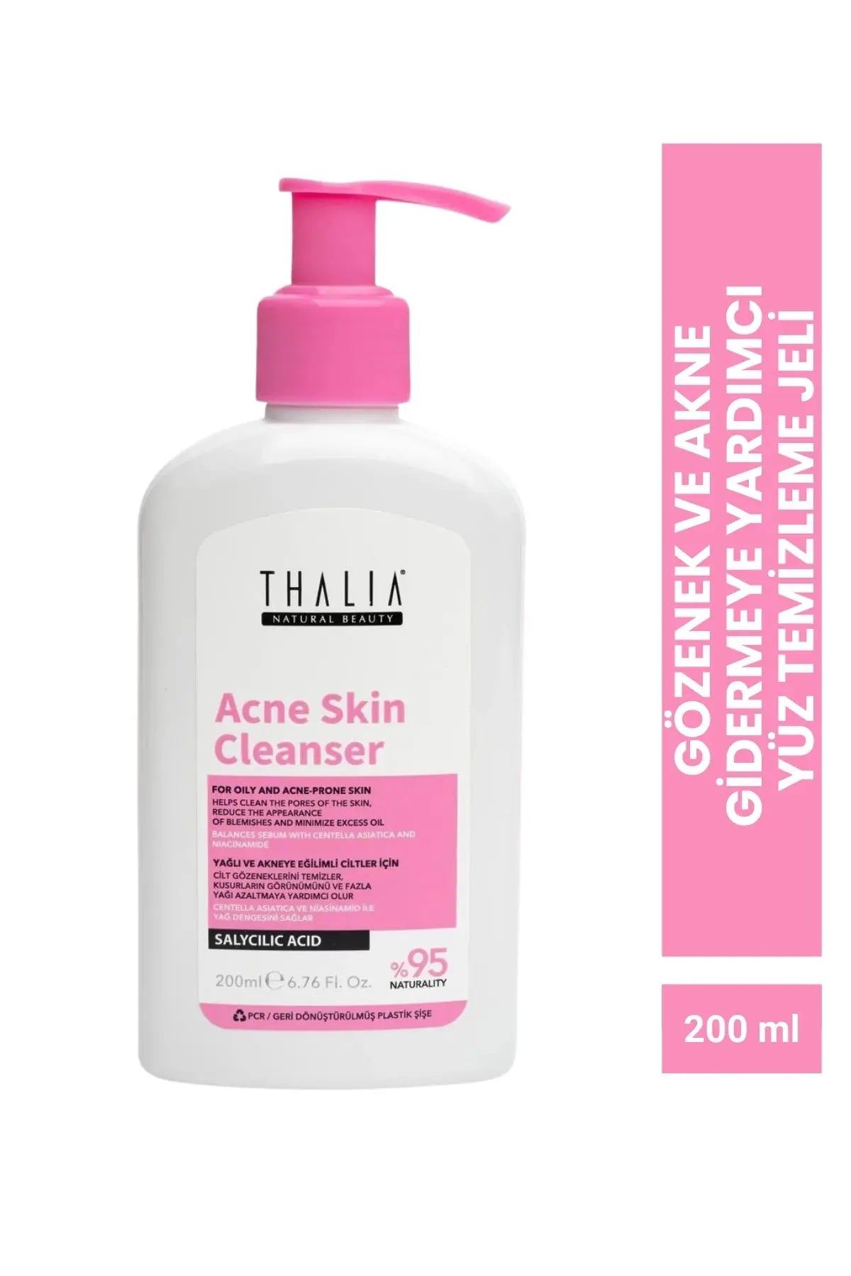 Thalia Pore and Acne Eliminating Facial Cleansing Gel combines salicylic acid and niacinamide to gently purify acne-prone skin while preventing pore clogging. Enriched with ceramide, it strengthens the skin barrier to maintain moisture and shield against environmental stressors. Centella Asiatica soothes and repairs, enhancing skin elasticity. Regular use helps reduce acne and blackheads, evens skin tone, and tightens pores for a clearer, healthier complexion. This expert-formulated gel supports balanced skin and improves overall appearance without over-drying.